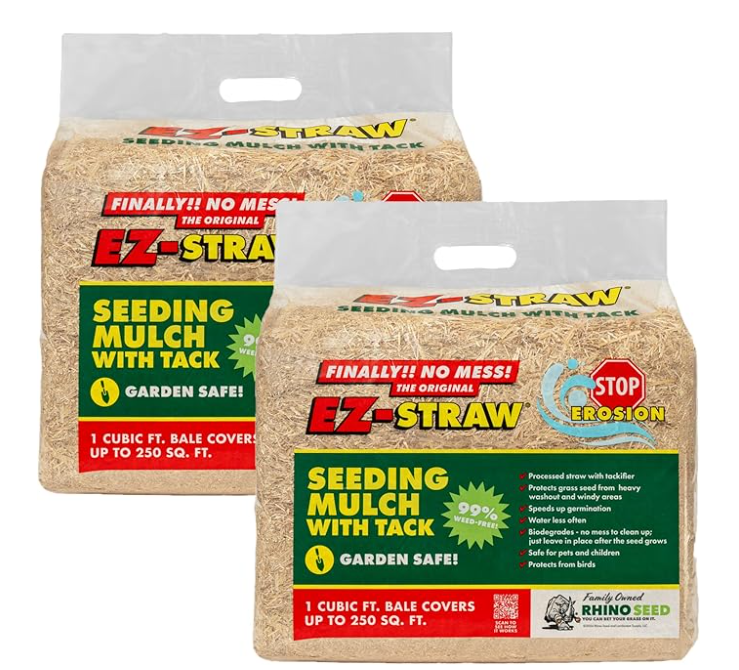 EZ Straw Seeding Mulch with Tack – Biodegradable Processed Straw, 1 cu. ft. Bale (Each Covers 250 sq. ft.), 2 Pack