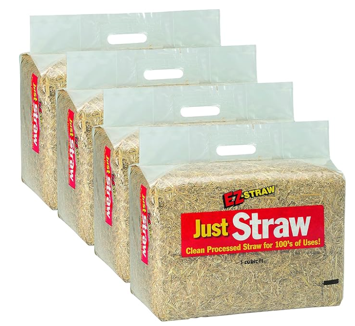 EZ Straw Rhino Seed EZ-Straw Just Straw 1 Cubic Foot Sun Protected Premium Clean Processed Seeding Straw Bale for Bedding, Nesting, and Craft Projects (4 Pack)